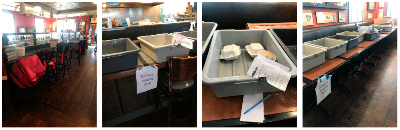 A roadhouse de Zingerman fechou suas portas para clientes que queiram comer dentro do estabelecimento no dia 16 de março e rapidamente mudou para aceitar somente pedidos para retirada, aproveitando sua área de Drive-Through. O local onde ficavam as mesas foi transformado em uma linha de montagem para preparar os pedidos para viagem, e os 5S (um conjunto de práticas organizacionais no local de trabalho que consiste em separar, colocar em ordem, limpar, padronizar e sustentar) foram usados para melhorar as operações, removendo os ítens desnecessários e introduzindo novos padrões de limpeza e higiene. Para manter os requerimentos de distanciamento social, a maior parte do processo de preparação foi movida para essa área. Eles criaram fluxo e permitiram que a capacidade fosse atendida utilizando essas áreas agora vazias. Os pedidos eram atendidos com o pessoal da cozinha colocando os itens em caixas; um segundo membro da equipe empacotava os itens; o pedido ia sempre da esquerda para a direita, fluindo em direção aos clientes, que esperavam nos carros.